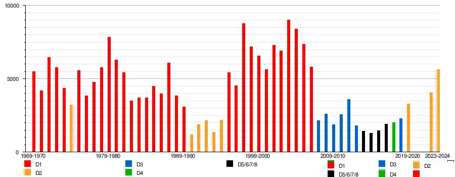 - Champion : 1975, 1993, 1995, 2024