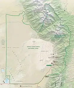 - (en) Parc national et réserve des Great Sand Dunes sur Natural Atlas