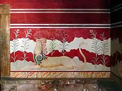 - de porter des personnages sur son dos (la divinité féminine mésopotamienne exhibant des serpents dans ses mains, Dionysos, Apollon et parfois une Néréide, ainsi que les défunts),