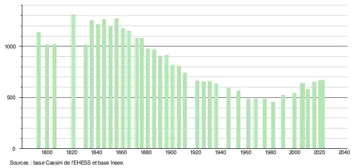 - ↑ Fiches Insee - Populations de référence de la commune pour les années 2006, 2007, 2008, 2009, 2010, 2011, 2012, 2013, 2014, 2015, 2016, 2017, 2018, 2019, 2020, 2021 et 2022.