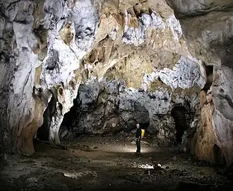 - ↑ En spéléologie, le développement correspond à la longueur cumulée des galeries interconnectées qui composent un réseau souterrain.