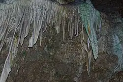 On laisse la salle des géants par un étroit passage derrière l'arbre, et on passe devant la grotte des cristaux. On arrive ainsi à la zone où se trouvent la plupart des concrétions bizarres. En suivant l'étroit couloir, on passe par la salle des chandelles marquée par des stalagmites en chandelle, puis après avoir monté quelques marches, on passe devant la cascade, la tortue et enfin les feuilles de tabac. Le visiteur arrive à la sortie de la grotte dans une gorge située 25 m plus haut que l'entrée, où sont entassés de puissants rochers. De là, le chemin descend un petit labyrinthe de rochers, passe une terrasse panoramique, puis la petite grotte du diable, et arrive enfin à l'entrée de la grotte. Cette descente dure environ 10 min. En 2006, des panneaux explicatifs sur la grotte ont été disposés sur ce chemin.