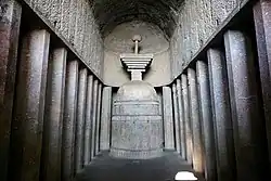 Nef central du chaitya de Bedsa avec le stupa dagoba.
