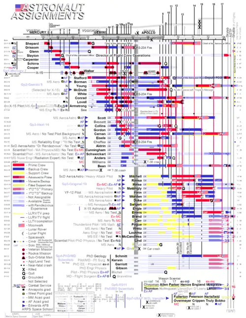 - ↑ (en) « Charting each generation of NASA astronauts reveals how the ’right stuff’ has changed », sur National Geographic (consulté le ).