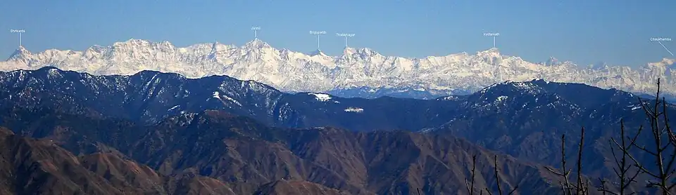 - Shivling (6 543 m), pointe rocheuse composée de deux sommets sacrés, symboles du dieu Shiva.