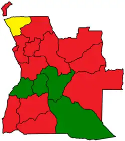 Ainsi, fin août, le MPLA a pris le contrôle de Luanda, mais aussi de Cabinda, Lobito, Benguela ainsi que plusieurs autres localités d'importance. En tout c'est près des trois-quarts des capitales provinciales, et des grands axes routiers du pays qui sont aussi aux mains des forces du MPLA et de ses alliés. De l'autre côté, l'UNITA de Savimbi et le FNLA de Roberto se trouvent dans l'incapacité de joindre leurs forces, et sont coupés des ports qui auraient pu permettre à leurs alliés de les ravitailler[6].
