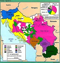 Cette multiethnicité était plus prononcée en Bosnie, où selon les statistiques de 1991, la Bosnie-Herzégovine comptait 4,3 millions d’habitants, dont 43,7 % de Bosniaques de religion musulmane, 31,4 % de Serbes orthodoxes, 17,3 % de Croates catholiques, 5,5 % de Yougoslaves (personnes s'identifiant comme tel), et 2,1 % de nationalités diverses[9].