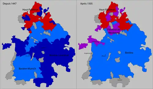 | Bavière-Munich | Bavière-Landshut et Palatinat du Rhin |