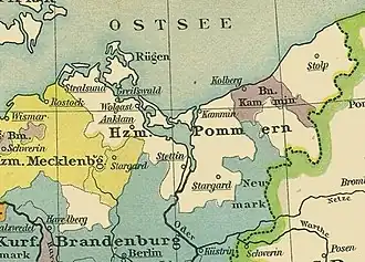 - (en) Cet article est partiellement ou en totalité issu de l’article de Wikipédia en anglais intitulé « War of the Succession of Stettin » (voir la liste des auteurs).