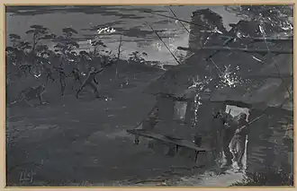 À partir des années 1830, l'invasion britannique s'est propagée rapidement à travers l'intérieur de l'Australie orientale, entraînant un conflit généralisé. La guerre a eu lieu dans les plaines de Liverpool, et a entraîné la mort de 16 Britanniques et, selon certaines estimations, de 500 Australiens autochtones entre 1832 et 1838. La violence dans cette région comprenait plusieurs massacres d'Autochtones, dont le massacre de Waterloo Creek (Waterloo Creek massacre (en))[40], les massacres de Myall Creek en 1838 ; elle n'a pris fin qu'en 1843. D'autres violences ont eu lieu dans la région de la Nouvelle-Angleterre au début des années 1840[22].