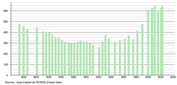 642 hab. (2022 en évolution de +5,42 % par rapport à 2016)