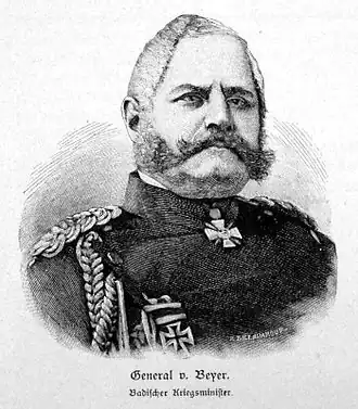 - Entrée "Gustav Friedrich von Beyer, général prussien, ministre grand-ducal de la guerre de Bade, debout en uniforme avec casque à pointes, portrait en buste" sur Découvrez le pays en ligne - leobw