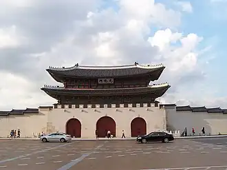 Gwanghwamun ou Porte de Gwanghwa (en hangeul 광화문) est la porte principale du palais de Gyeongbokgung, dans l'arrondissement Jongno-gu, au cœur de la ville de Séoul en Corée du Sud.