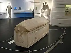 Un sarcophage en pierre calcaire sobrement sculpté portant les inscriptions en hébreu et syriaque « Sadah reine » et « Saddan reine » (Tzada Malchata צדה מלכתה), trouvé au XIXe siècle par l'archéologue Félicien de Saulcy, est censé être celui d'Hélène[25]. Le sarcophage a été transféré au musée du Louvre, en plein accord avec les autorités archéologiques ottomanes de l’époque.