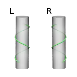 - Si , on dira d'une particule que son hélicité est gauche (négative) selon que son spin est orienté dans le sens opposé à son mouvement.