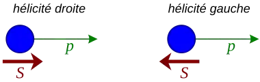 - Si , on dira d'une particule que son hélicité est droite (positive) selon que son spin est orienté dans le même sens que son mouvement.