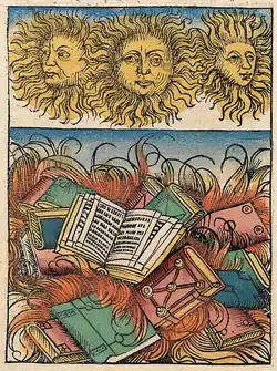 — Premier vers d'une chanson[32] comparant « Helois » à Helios. Elle a été attribuée[26] à Abélard par rapprochements[33] avec les deux premiers vers d'un poème qu'il lui a adressé[34].