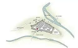 Le tissu urbain s’est recréé et densifié après les destructions du siège de 1484. A l’extérieur de la ville intramuros on trouve un bâti disséminé le long des faubourgs"[1].