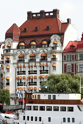 Construit en 1907-1911 par le cabinet d'architectes Hagström & Ekman, le bâtiment est transformé en hôtel en 1966[2], détenu depuis quatre générations par la famille Malmström[3].
