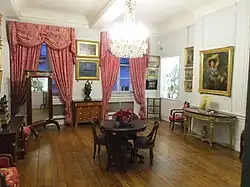 La demeure est constituée d'une suite de pièces, organisées autour d'une cour intérieure, et d'un escalier monumental en pierre surmonté d'un dôme octogonal richement décoré.