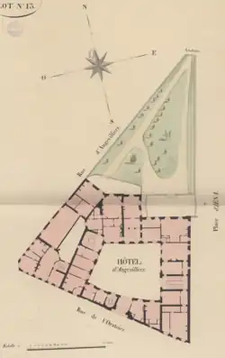 De 1808 à 1854, l'hôtel donne sur un grand jardin en terrasse qui forme le coin de la place du Louvre et de la rue d'Angiviller, avec une vue imprenable sur la colonnade du Louvre.