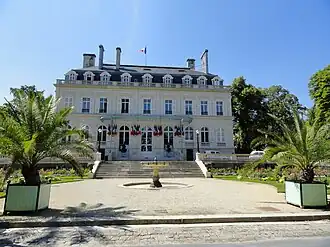 Le bâtiment construit en 1858 est agrandi après 1870 par l'architecte Alphonse Gosset est inscrit en 2012[3] tant pour ses façades et toitures, que pour le décor intérieur du rez-de-chaussée, l'escalier et la cage d'escalier avec ses vitraux, le vestibule de l'étage avec son puits de lumière. Mais aussi les bâtiments des communs qui se trouvent de l'autre côté du jardin [4]. Tous abritent les services municipaux. La mairie qui s'installe ici en 1920 inaugure en 1924 le monument aux morts de la grande guerre, elle est entourée par un jardin vers la gare[5] vers l'avenue de Champagne.