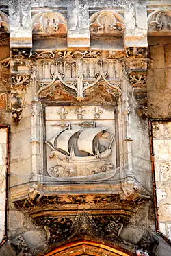 La Rochelle passa dans le domaine royal en 1224. Elle devint possession anglaise en 1360 avec le traité de Brétigny. En 1372, la ville est assiégée par le roi de France Charles V. Les Rochelais, souhaitant redevenir français, réussirent à prendre par la ruse le château royal des mains d'une garnison anglaise. Cependant, ils négocièrent le prix de leur soumission et arrachèrent au roi de France des privilèges étendus dont l’inaliénabilité de la ville à la couronne de France, la promesse de la destruction du château royal et l'interdiction faite d'en ériger un nouveau[5]. Cette interdiction fut tenue, non sans mal, jusqu'à l’érection du Fort Louis en 1622, situé à une portée de canon de la ville. La démolition du château Vauclair[6], dernier symbole du pouvoir royal sur la ville, fut entamée le lendemain de l'entrée du roi dans la ville. La ville continua à prospérer à l'intérieur de ses remparts. Le château royal, ayant disparu, la ville se dota de son propre symbole. L’échevinage devait montrer à tous la prospérité de la ville, ses libertés et ses privilèges qu'elle entendait préserver à n'importe quel prix n'ayant dans la dite ville ni comte, ni vicomte, ni châtelain que le roi.