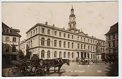 L'hôtel de ville a été en grande partie détruit pendant la Seconde Guerre mondiale. Dès juin 1941, seuls les murs extérieurs étaient essentiellement conservés [5].