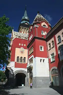 L'hôtel de ville de Subotica a été construit sur la place principale de Subotica entre 1908 et 1912, sur les plans des architectes de Budapest Marcell Komor (1868-1944) et Dezső Jakab (1864–1932), dans le style de la Sécession hongroise[1] ; la décoration intérieure de l'édifice a été achevée en 1912[2]. Il se présente comme un bâtiment monumental réalisant la synthèse entre les éléments architecturaux et décoratifs et la tradition ornementale hongroise mêlée à des solutions architecturales contemporaines[1].
