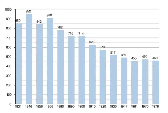 - Sources : INS, Rem. : 1831 jusqu'en 1970 = recensements, 1976 = nombre d'habitants au 31 décembre.