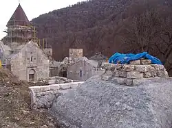 Vue générale du monastère depuis le nord-ouest (de gauche à droite) : Sourp Astvatsatsine, Sourp Stepanos, Sourp Grigor, gavit.