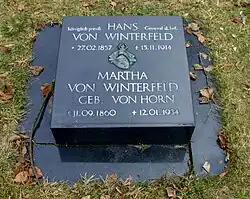 Il est marié avec Martha von Horn (1860-1934). Winterfeld décède à Wiesbaden en novembre à l'âge de 58 ans. Hans von Winterfeld et sa femme trouvent leur dernière demeure au cimetière des Invalides de Berlin . La tombe est marquée d'une pierre de restitution.