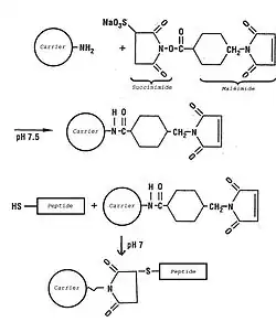 Il existe plusieurs techniques de couplage peptides/haptènes-transporteur:
