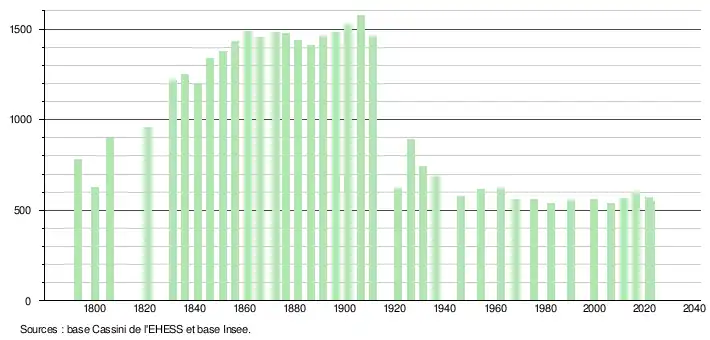 - ↑ Fiches Insee - Populations de référence de la commune pour les années 2006, 2007, 2008, 2009, 2010, 2011, 2012, 2013, 2014, 2015, 2016, 2017, 2018, 2019, 2020, 2021 et 2022.