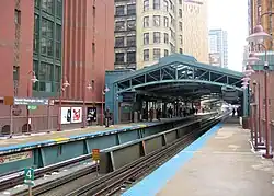 La station est desservie par la ligne brune dans le sens inverse des aiguilles d’une montre sur la voie extérieur du Loop et par les lignes mauve (en heure de pointe), orange, et rose dans le sens horaire sur la voie intérieure du Loop.