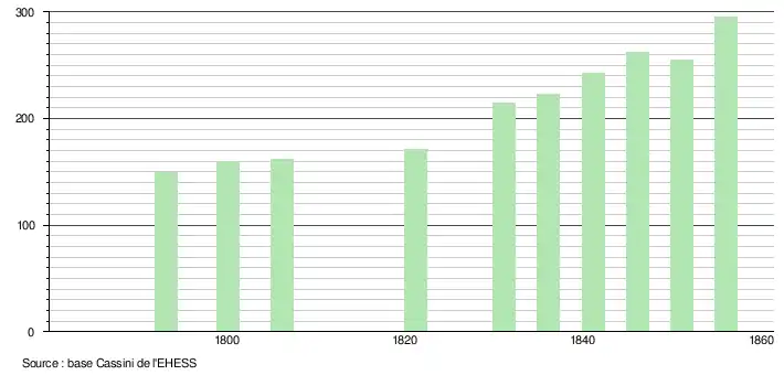 Jusqu'en 1859, la démographie d'Hartennes était :