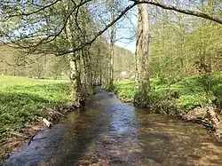 L'Haslochbach prend sa source dans l'Haselbrunnen dans la vallée de Haseltal, au pied du Geiersberg, le point culminant du Spessart.