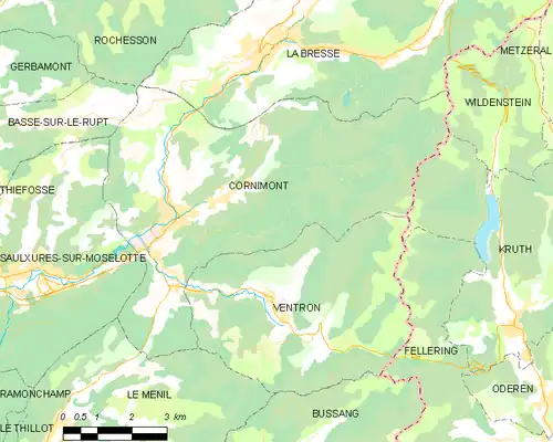 La cité est située dans la vallée de la Moselotte, entre La Bresse et Saulxures-sur-Moselotte, mais le peuplement est dispersé : le hameau de Xoulces occupe une vallée sans issue (vallée du Xoulces), celui de Travexin se situe en direction de Ventron et du Thillot, les adrets ont vu l'implantation de fermes puis de chalets : le Droit de Cornimont, le Droit de Xoulces, Parfongoutte, le Brabant… D'amont en aval, la Moselotte traverse les quartiers de Lansauchamp, Cherménil, le Faing, le Daval et les Meix Fraiteux.