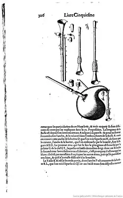 Le hautbois de Poitou est décrit par Marin Mersenne dans son Harmonie universelle (1636), qui le représente sous trois tailles différentes : dessus, taille et basse[1],[3].