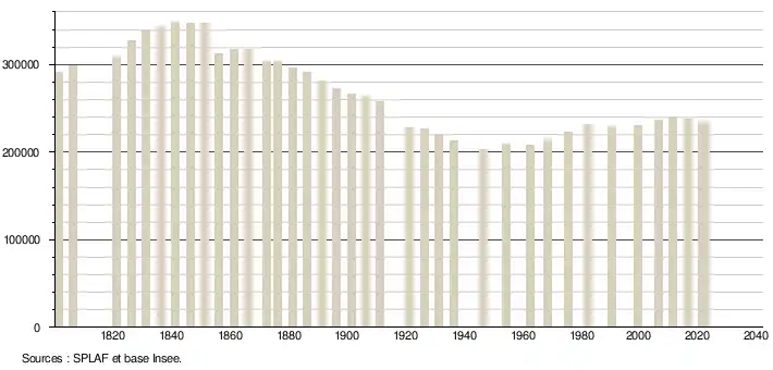 - ↑ Population municipale de référence en vigueur au 1er janvier 2025, millésimée 2022, définie dans les limites territoriales en vigueur au 1er janvier 2024, date de référence statistique : 1er janvier 2022.