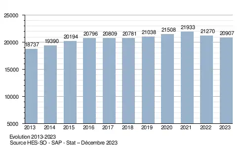 - ↑ Office fédéral de la statistique, « Hautes écoles spécialisées », sur www.bfs.admin.ch (consulté le )