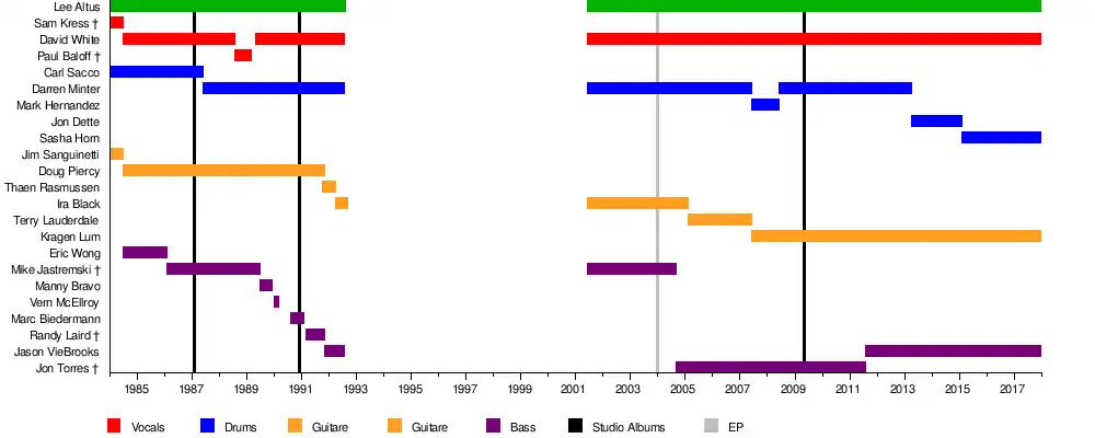 - Mike « Yaz » Jastremski - basse (1986–1988, 2001–2004 ; décédé en 2005)
