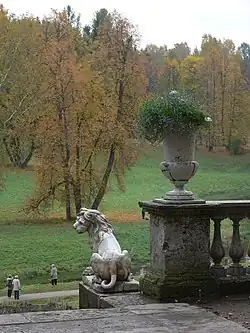 Il fait installer des serres, des orangeries et planter toute sorte d'essences dès les années 1790. En 1807, il fait travailler Jean-François Thomas de Thomon[1] à de nouvelles fabriques. Asmus peignait aussi des compositions qui lui permettaient ensuite de créer des parterres de fleurs. Il est à l'origine d'un théâtre de verdure en 1811 dans le secteur central du parc.
