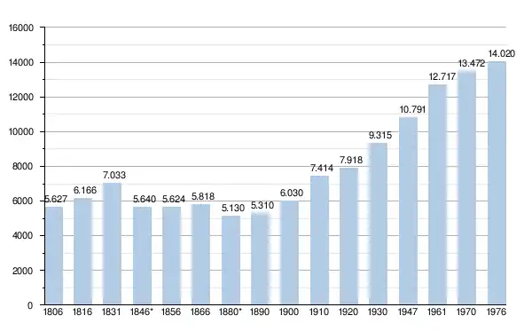 - Sources : INS, Rem. : 1831 jusqu'en 1970 = recensements, 1976 = nombre d'habitants au 31 décembre[7].