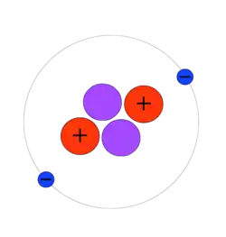 On connait huit isotopes de l'hélium. L'hélium 3 (deux protons et un neutron) et l'hélium 4 (deux protons et deux neutrons) sont stables, les autres sont extrêmement instables, certains n'existant virtuellement que lors de leur formation. Dans l'atmosphère terrestre, il n'y a qu'un atome d'hélium 3 pour environ un million d'atomes d'hélium 4[11]. Contrairement à la plupart des éléments, l'abondance isotopique de l'hélium varie considérablement selon son origine, en raison des processus de formation différents. L'isotope le plus abondant, l'hélium 4, est produit sur Terre par la radioactivité α d'éléments lourds : les particules α qui y sont produites sont des noyaux d'hélium 4 complètement ionisés. L'hélium 4 est un noyau à la stabilité inhabituelle, parce que ses nucléons sont arrangés en couches complètes.