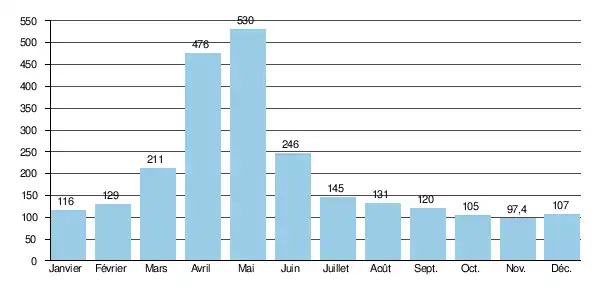 | Période | Débits mensuels moyens en millions de mètres cubes | ||
