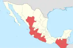 La carte ne correspond pas au texte puisque les États de Mexico, d'Oaxaca, du Sinaloa et du Sonora ne sont pas en rouge. Erreur lors de la conception de la carte ?