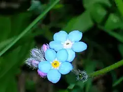 Au premier chapitre, Henri fait un rêve étrange dans lequel il voyage jusqu'à arriver dans une caverne. À l'intérieur se trouve une fleur bleue (de) qui captive toute l'attention du héros et puis semble tout à coup se transformer et prendre la forme d'un visage féminin. Ce rêve est quelque peu prémonitoire pour Henri, et la fleur bleue revient ponctuellement dans le roman. Elle laisse une véritable empreinte dans la tête du héros puisqu'il dit : « voir de mes yeux la Fleur Bleue, voilà ce qui fait soupirer mon cœur ! C'est elle qui m'occupe constamment l'esprit ; je ne peux plus penser à rien, imaginer rien d'autre[3]. »