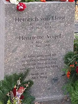 Le , Henriette Vogel et Heinrich von Kleist se donnent rendez-vous au Wannsee, où ils ont passé la nuit dans une auberge en écrivant des lettres d'adieu. Le lendemain après-midi, ils se donnent la mort ; Kleist tue Henriette puis retourne l'arme contre soi[1]. Tous deux ont été enterrés sur place.