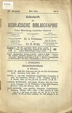 Il est pendant un certain temps secrétaire de la société littéraire Mekiẓe Nirdamim crée en 1864 à Lyck en province de Prusse, spécialisée dans la publication de livres anciens et de manuscrits en hébreu, et en 1896, fonde le Zeitschrift für Hebräische Bibliographie, journal dont il sera le coéditeur avec Aron Freimann.